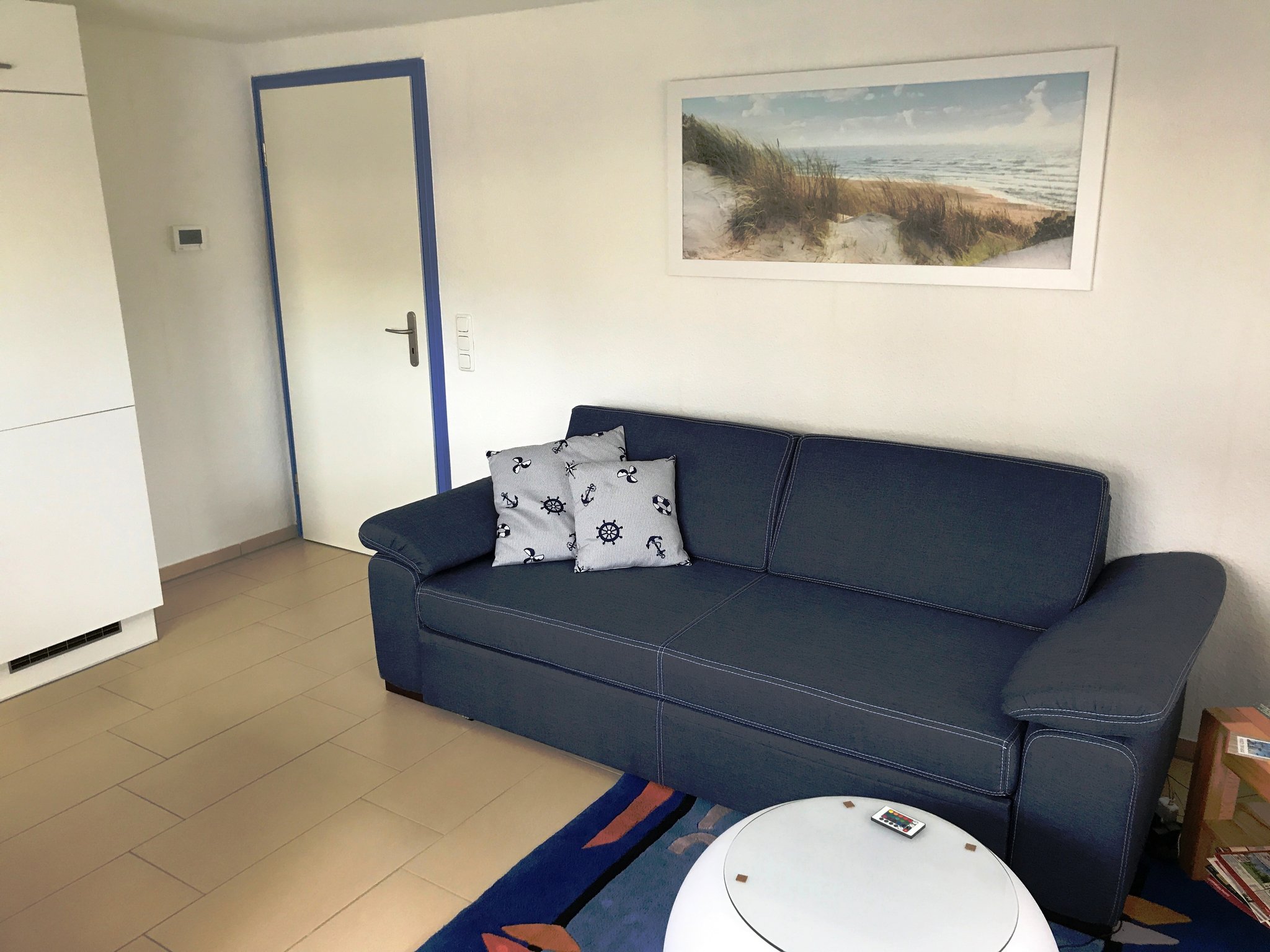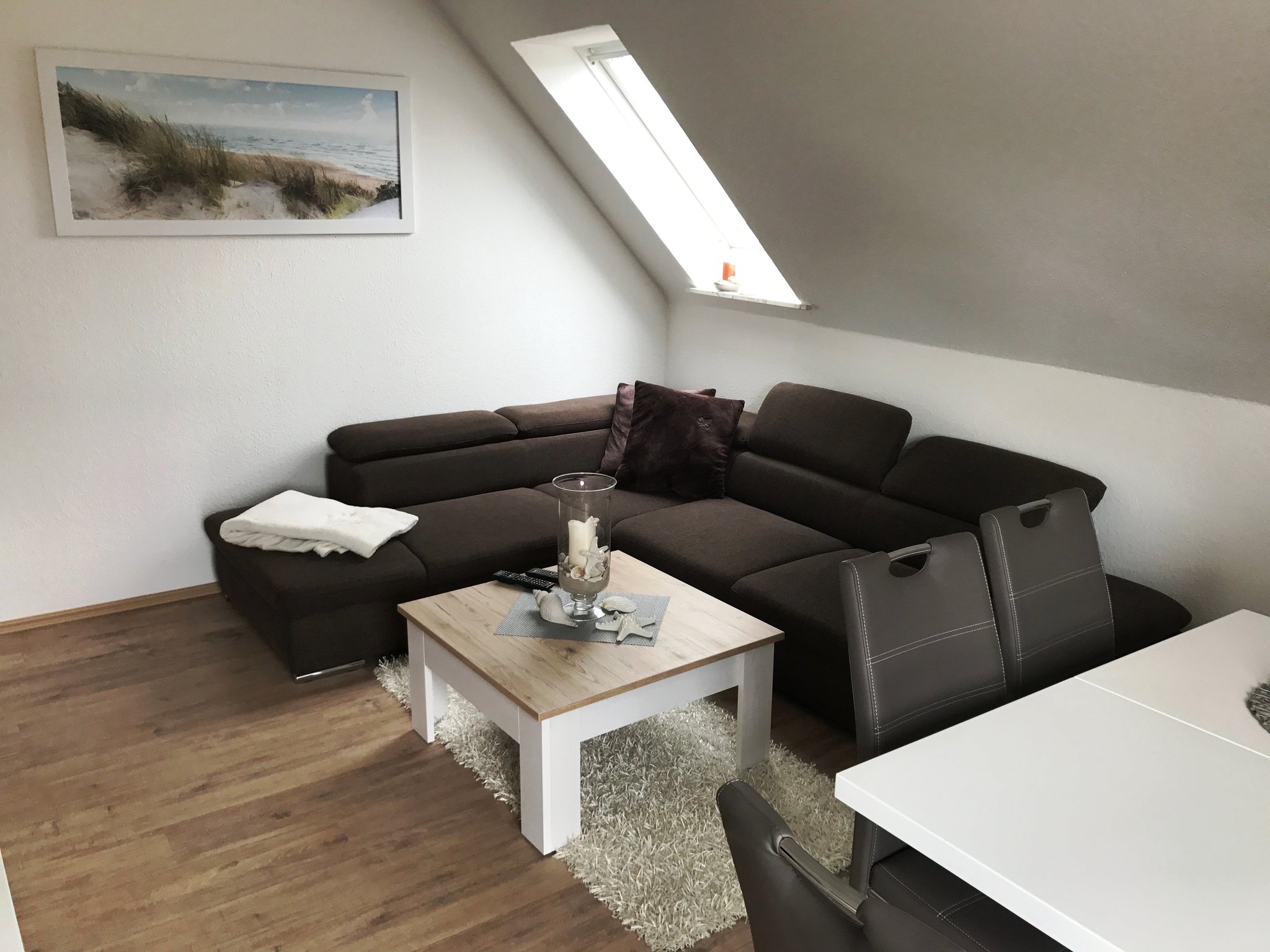In der geräumigen Dachgeschoss-Wohnung finden 6 Personen in 3 Schlafzimmern Platz. Das gemütliche Wohnzimmer lädt zu Film- und Spieleabenden ein.