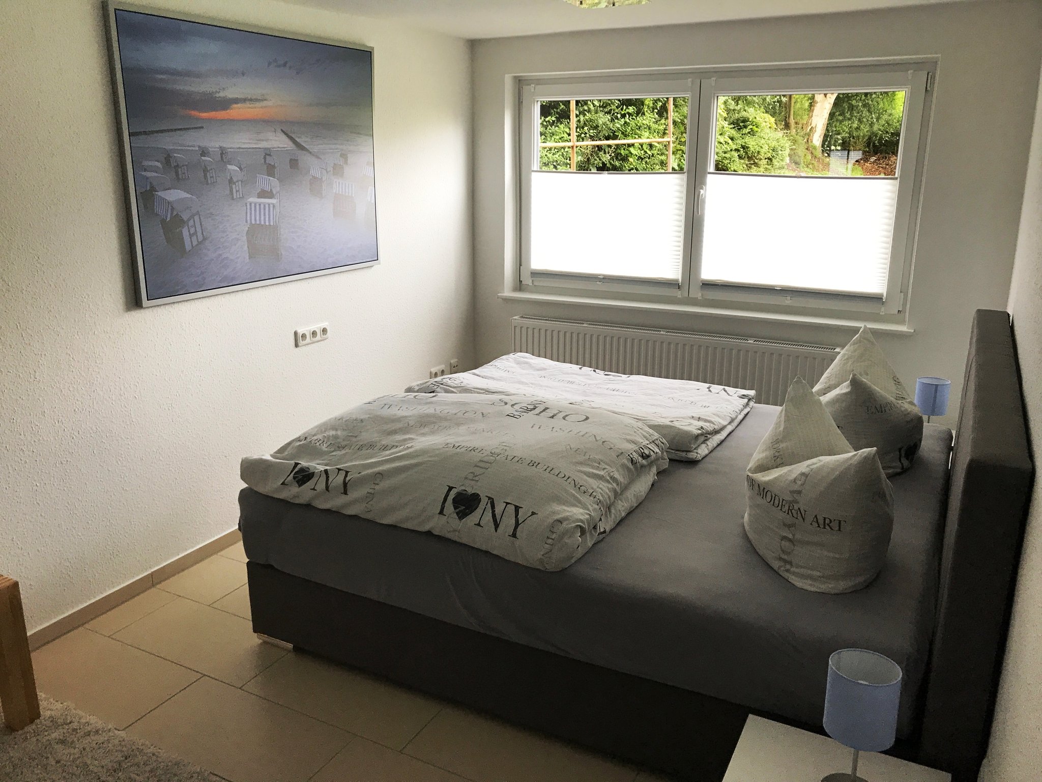 Die gemütliche Wohnung bietet bis zu 6 Schlafplätze in 2 Schlafzimmern und einem Wohn-/Esszimmer. Sie hat Zugang zur Gartenterasse, auf der lange Grillabende zum Erlebnis werden.