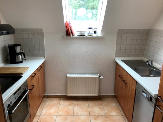 Wasserkocher und Kaffeemaschine sowie eine Dolce Gusto Maschine sind ebenfalls vorhanden-natürlich auch Besteck, Gläser, Teller, Töpfe, Pfannen, Auflaufform....etc.